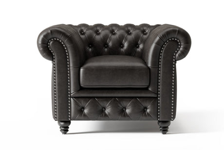 Valencia Parma Full Aniline Leather Chesterfield Single Sofa Accent Chair, Black