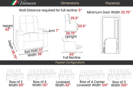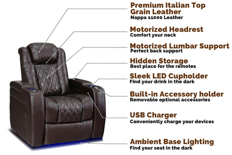 Valencia Tuscany Leather Home Theater Seating Single, Dark Chocolate