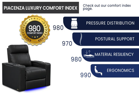 Valencia Piacenza Luxury Leather Home Theater Seating Row of 3 Loveseat Right, Onyx
