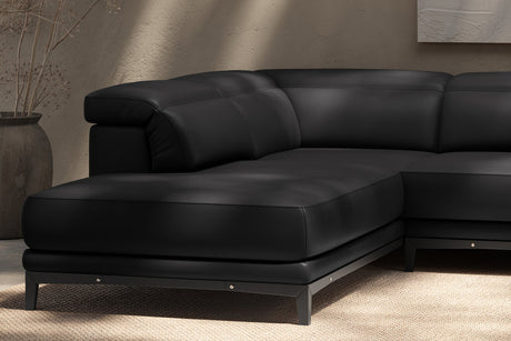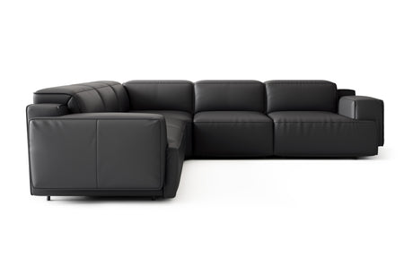 Valencia Valentina Leather Sectional L-Shape Recliner Sofa, Black
