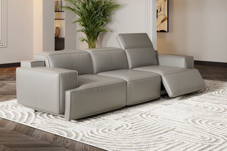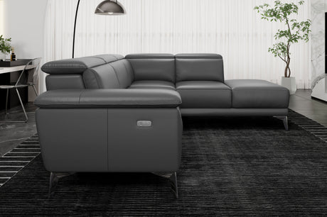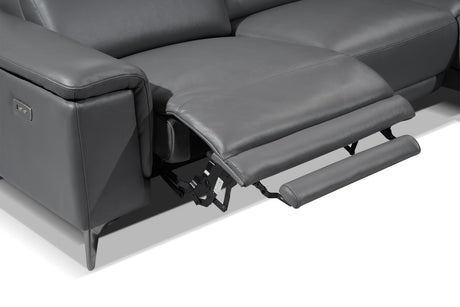 Valencia Pista Modern Top Grain Leather Reclining Sectional Sofa with Right-Hand Facing Chaise, Grey