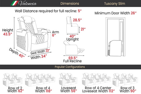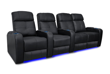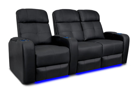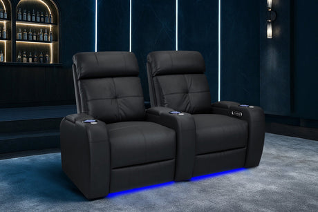 Valencia Tuscany Slim Leather Home Theater Seating Row of 2 Loveseat, Midnight Black