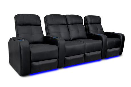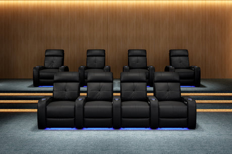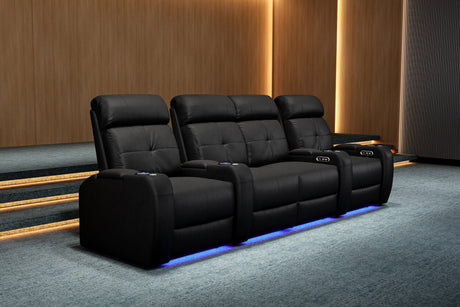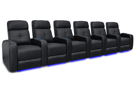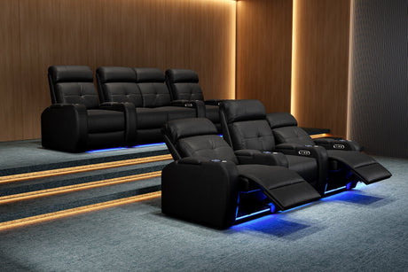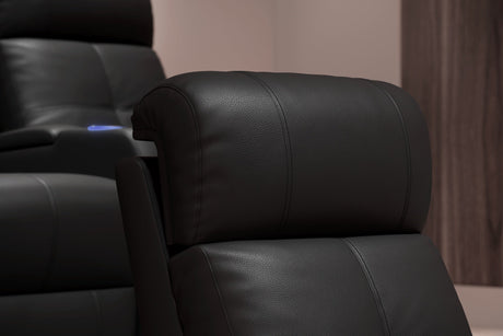 Valencia Tuscany Slim Leather Home Theater Seating Row of 3, Midnight Black