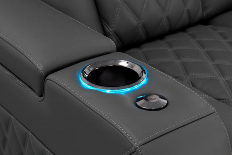 Valencia Tuscany Luxury Console Leather Home Theater Seating Row of 3 Dropdown Center, Graphite