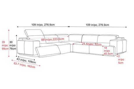 Valentina Leather Corner Recliner Sectional