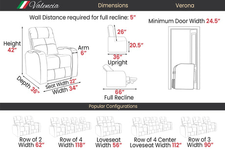 Valencia Tuscany Slim Leather Home Theater Seating Row of 3 Loveseat Left, Midnight Black