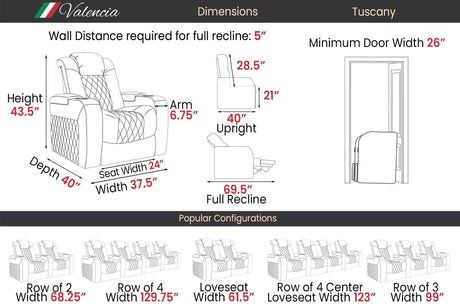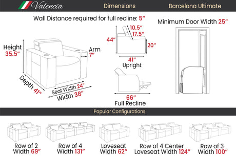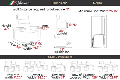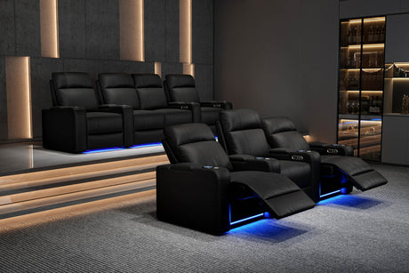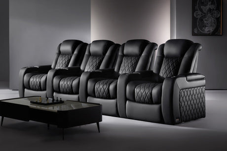Valencia Monza Leather Home Theater Seating With Carbon Fiber Panel Single, Carbon Black