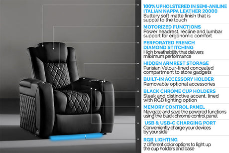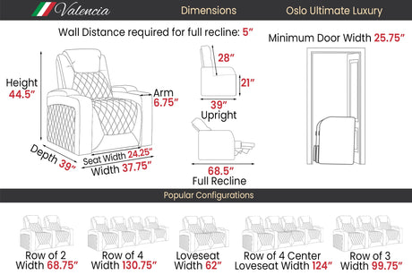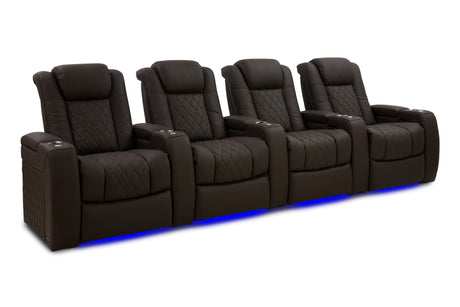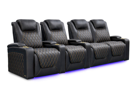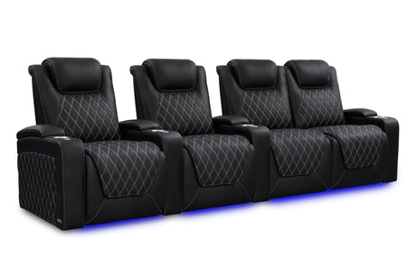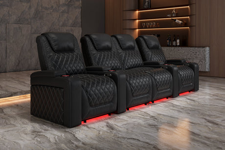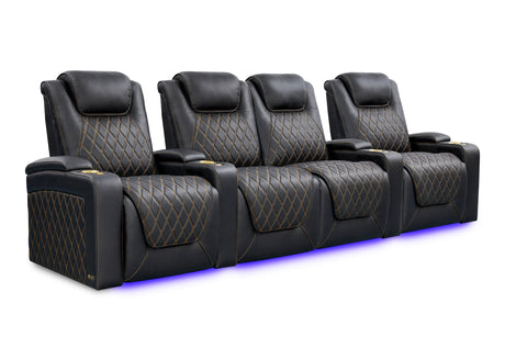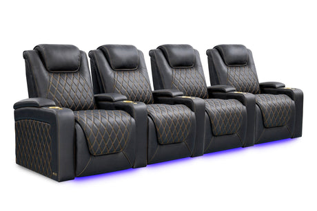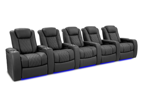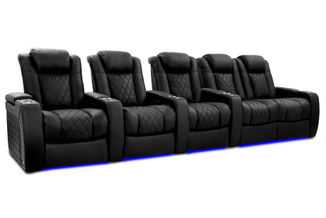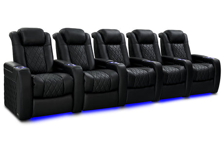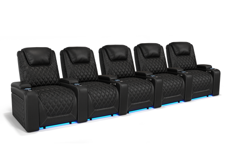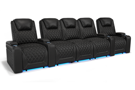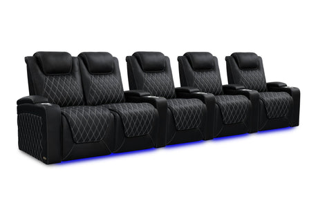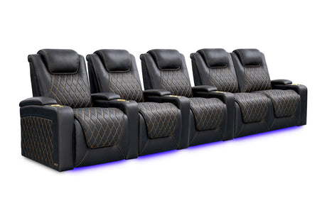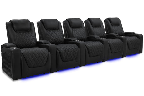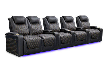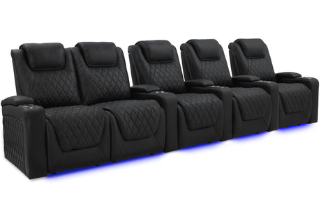 Valencia 2025 New Oslo Leather Home Theater Seating Row of 5, Midnight Black