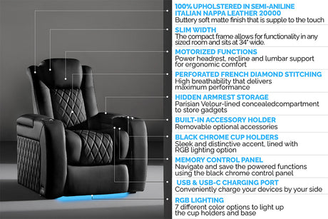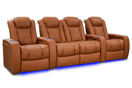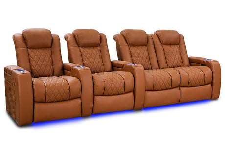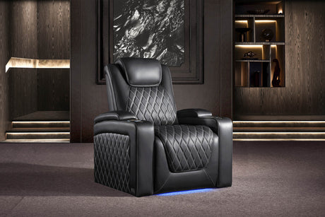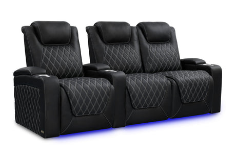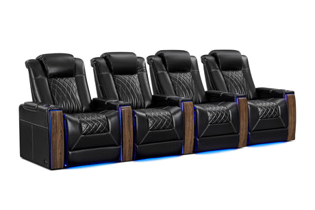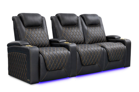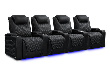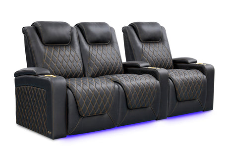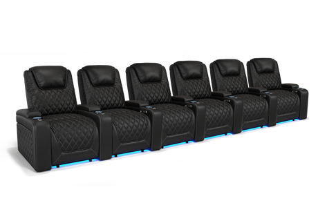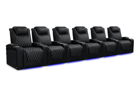 Valencia 2025 New Oslo Leather Home Theater Seating Row of 6, Midnight Black