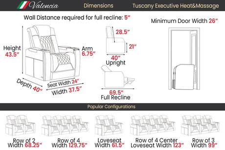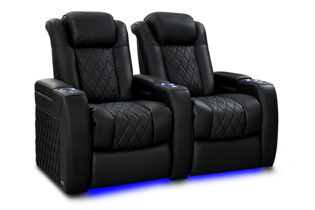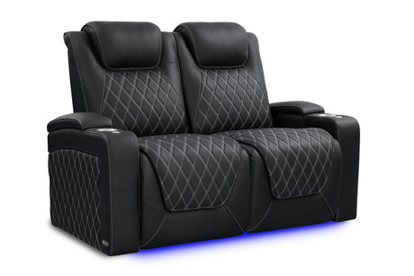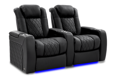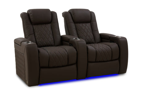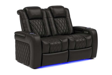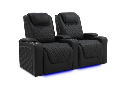 Valencia 2025 New Tuscany Italian Leather Home Theater Seating Row of 2 Loveseat, Midnight Black