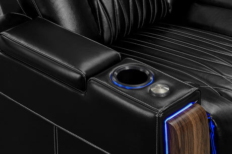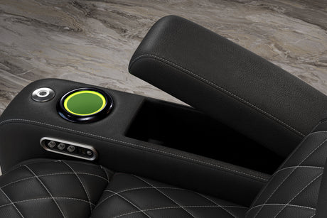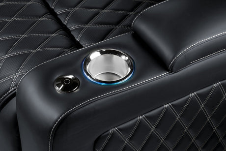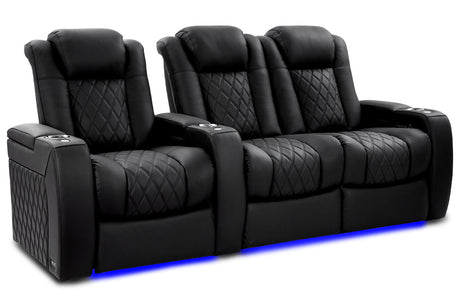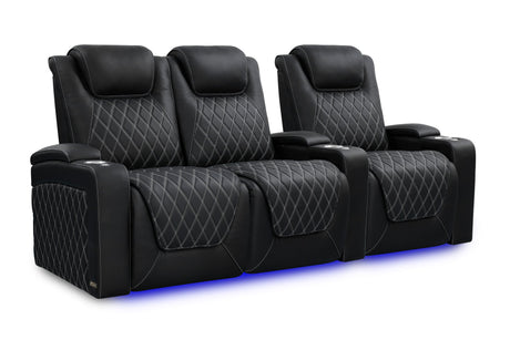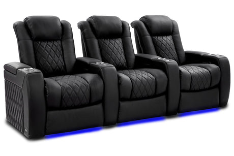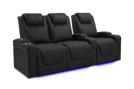 Valencia 2025 New Oslo Leather Home Theater Seating Row of 5 Set of 3 Center, Midnight Black
