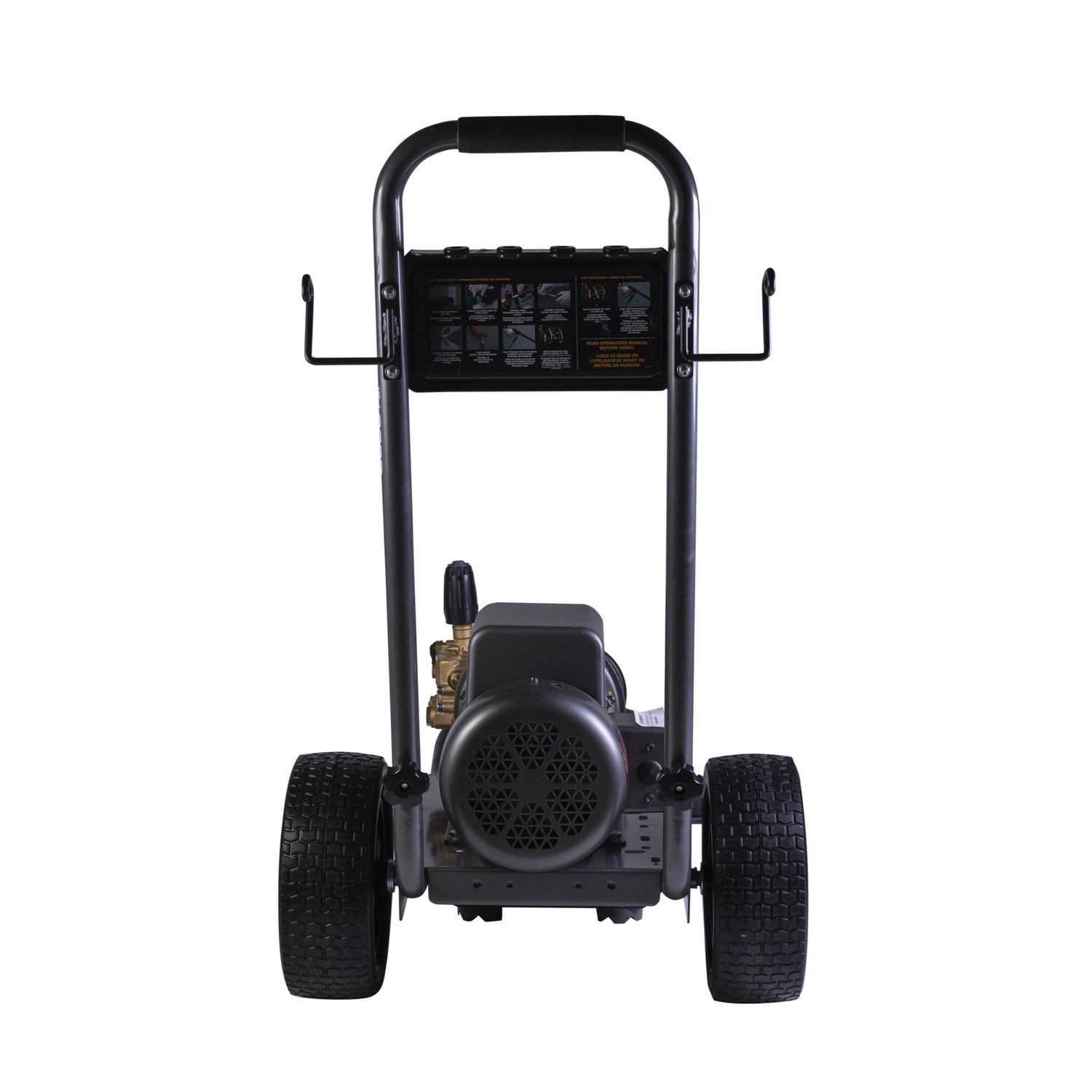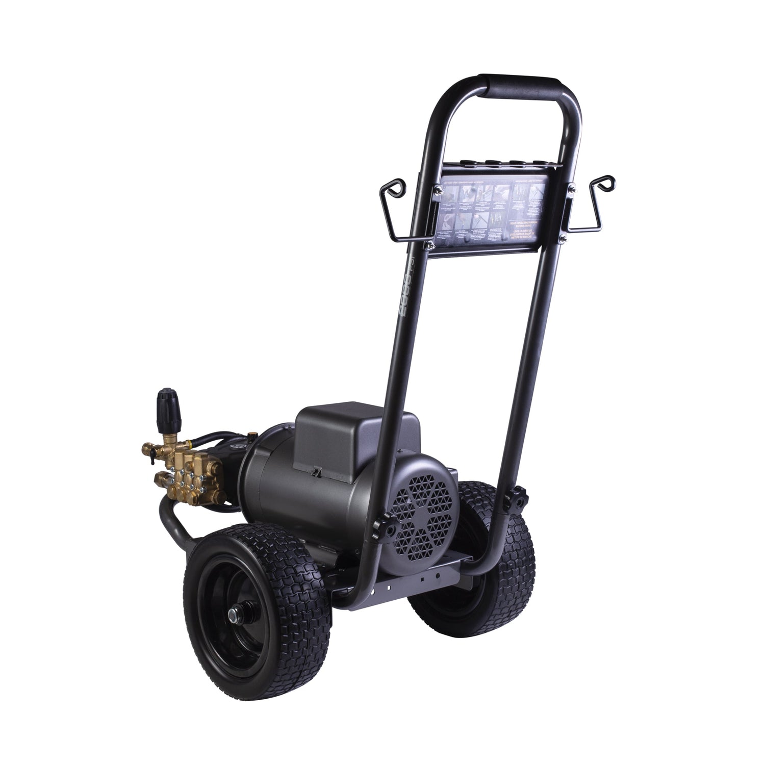 This electric pressure washer is not only powerful, but it's also built to move with you. The powder-coated steel frame resists corrosion, and 12” flat-free tires mean no downtime from flats or leaks. You can roll over job site debris, maneuver around corners, and haul the unit across gravel or shop floors with confidence.