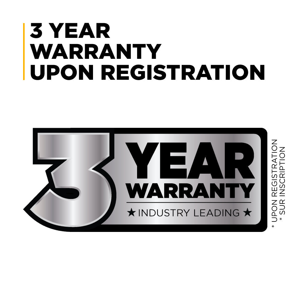 • Warranty: 3-year limited warranty (engine warranty separate)