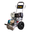 Powered by a Honda GX390 engine delivering 4200PSI for tackling your toughest job. The large capacity fuel tank provides long runtime, an automatic low oil shutdown shuts the engine off if your oil is low and a thermal relief valve on the pump dumps out built-up hot water if you happen to leave your pressure washer running and unattended. Featuring a durable, hand truck frame design and large 12 in. flat-free wheels, this pressure washer is designed for easy transport.