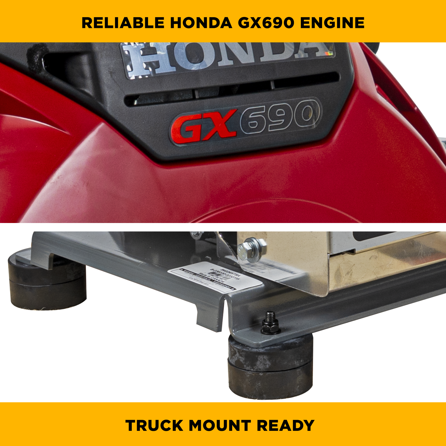 This BE Power Equipment 4200PSI Truck Mount Pressure Washer is engineered with anti-vibration pads that bolts through to mount on a truck or trailer. Powered by Honda GX690 engine delivers 4200PSI for tackling your toughest job.