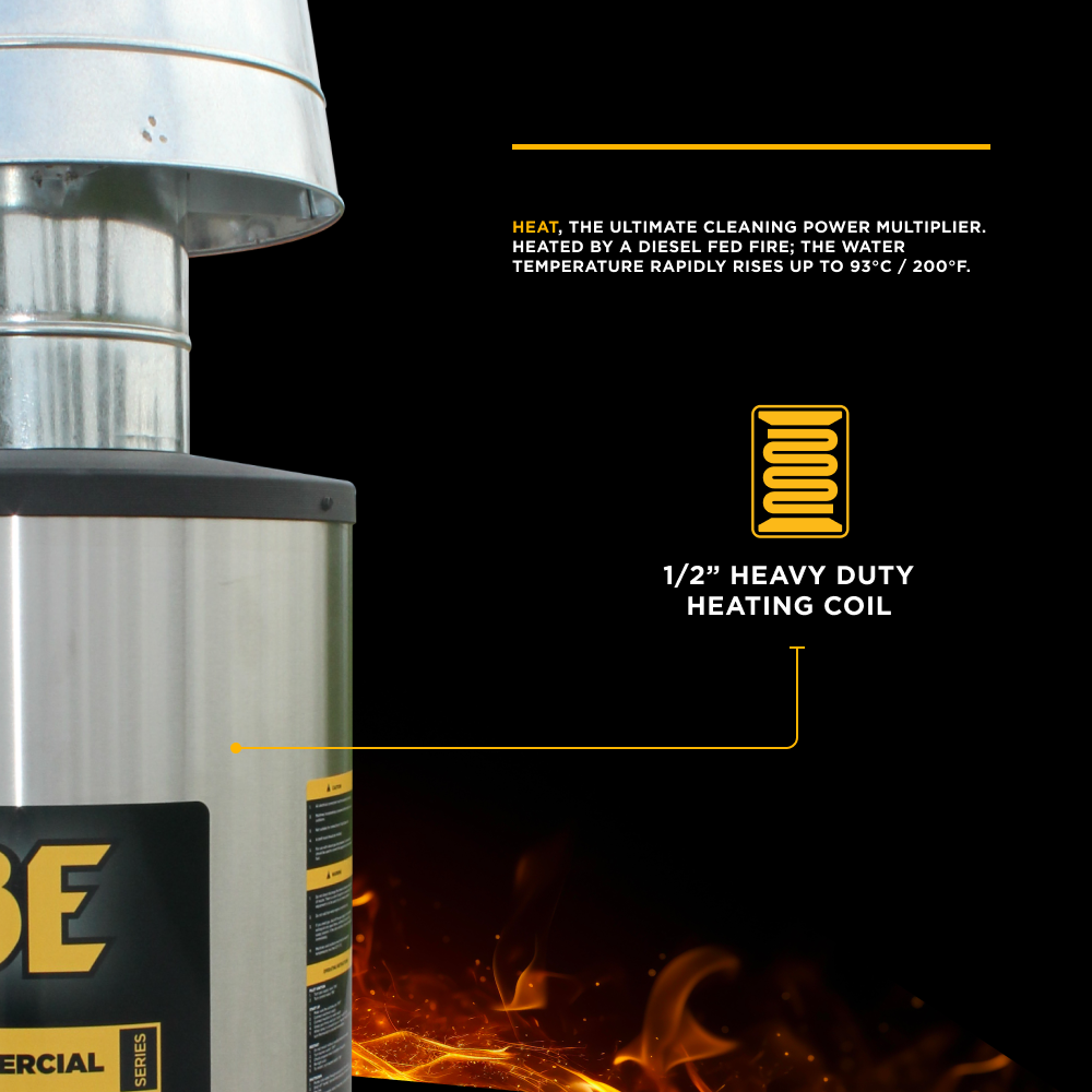 Heating coil has a stainless steel wrap protecting the heavy duty 1/2” schedule 80 carbon steel cold rolled pipe.