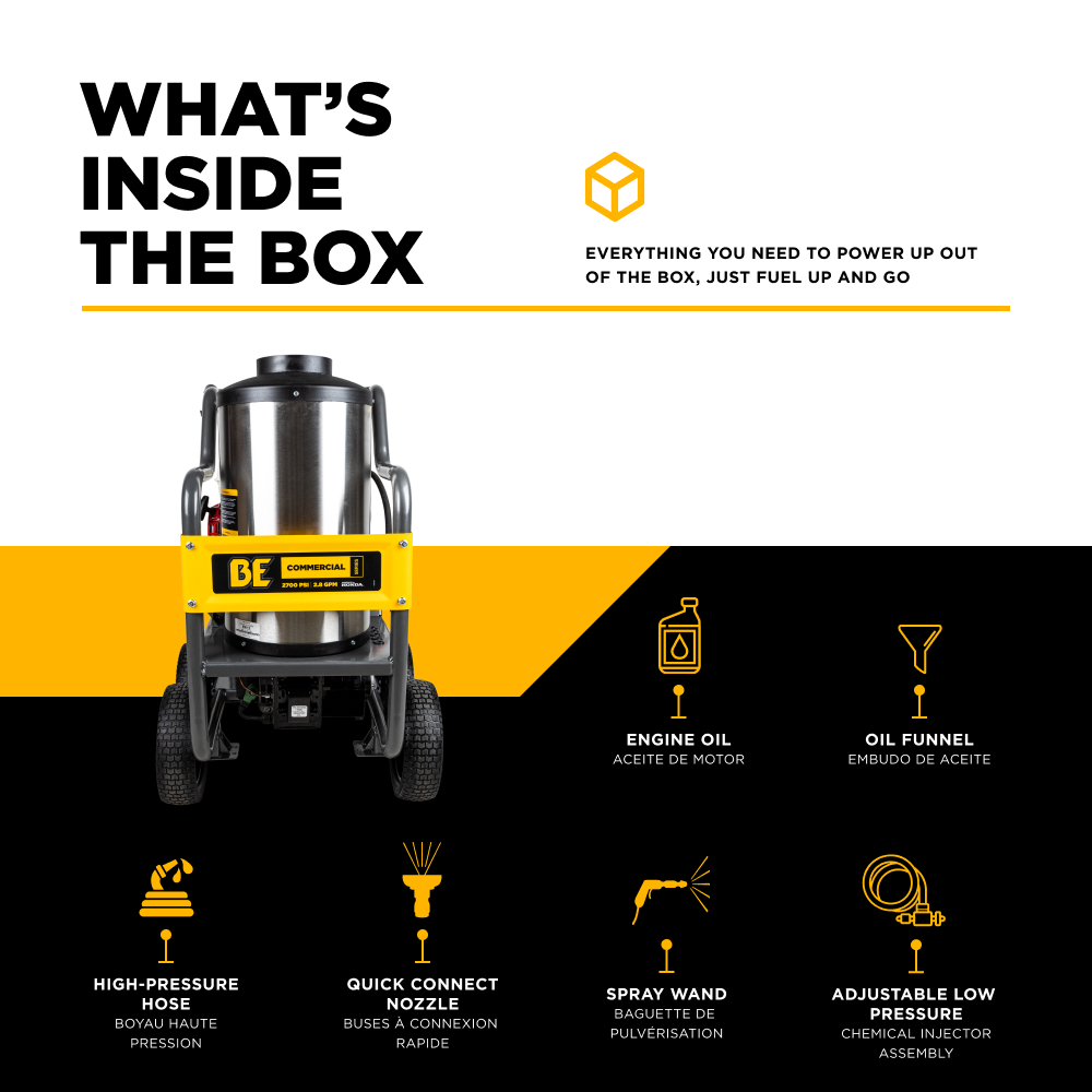 BE Power 3000PSI 3.0GPM Hot Water Pressure Washer with Honda GX200 Engine and General Triplex Pump - HW2765HG