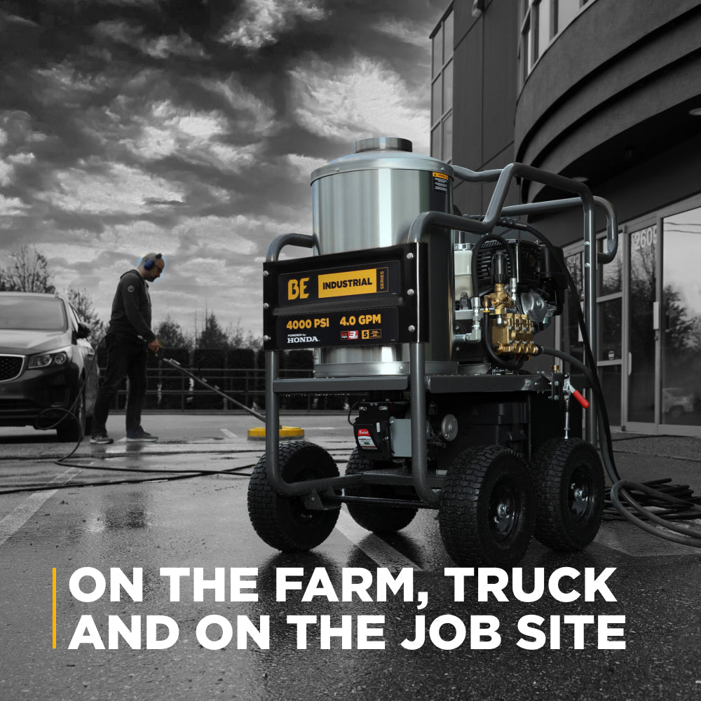 BE Power 4,000 PSI - 4.0 GPM Hot Water Pressure Washer with Honda GX390 Engine and Belt Driven General Triplex Pump - HW4013HBG