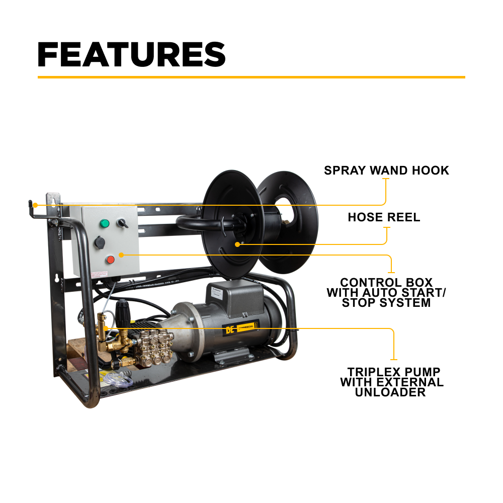 BE Power 2,000 PSI 4.0 GPM 5.0 HP Electric Pressure Washer with Baldor Motor and AR Triplex Pump - X-2050FW1A