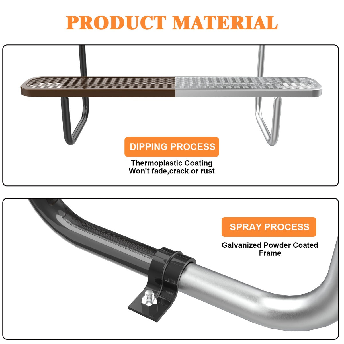 Enjoy outdoor dining with this 6ft Rectangle Picnic Table, featuring a sturdy steel frame with Φ48x2.5mm zinc-sprayed, black powder-coated legs for durability and rust resistance. The brown tabletop includes a convenient umbrella hole for shade on sunny days. Perfect for backyards, parks, and patios, this weather-resistant table offers ample seating for gatherings, barbecues, and outdoor events.