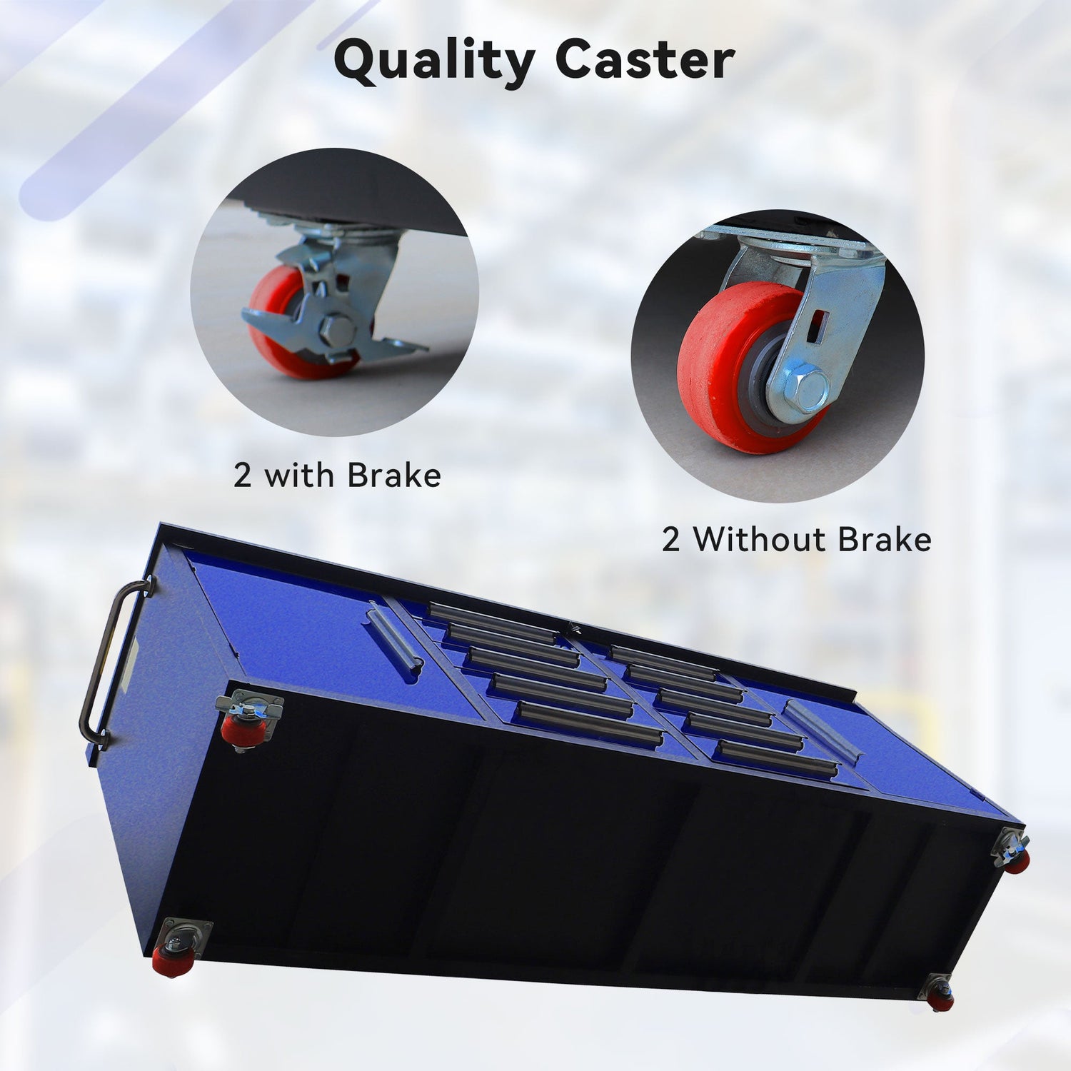 This Robust 7ft Storage Workbench with 10 spacious drawers and wheels offers versatile functionality and mobility, featuring handles on both sides for easy maneuvering. With a thick plywood-lined top supporting up to 1,653 lbs and durable steel construction, this workbench is built for heavy-duty performance.