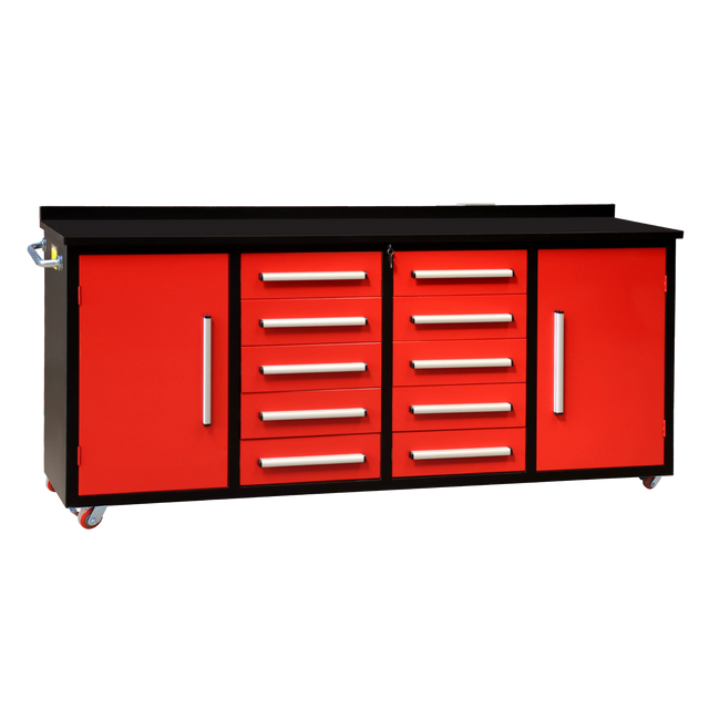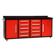 7ft 10-drawer Storage Workbench with Wheels - Red is backordered and will ship as soon as it is back in stock.