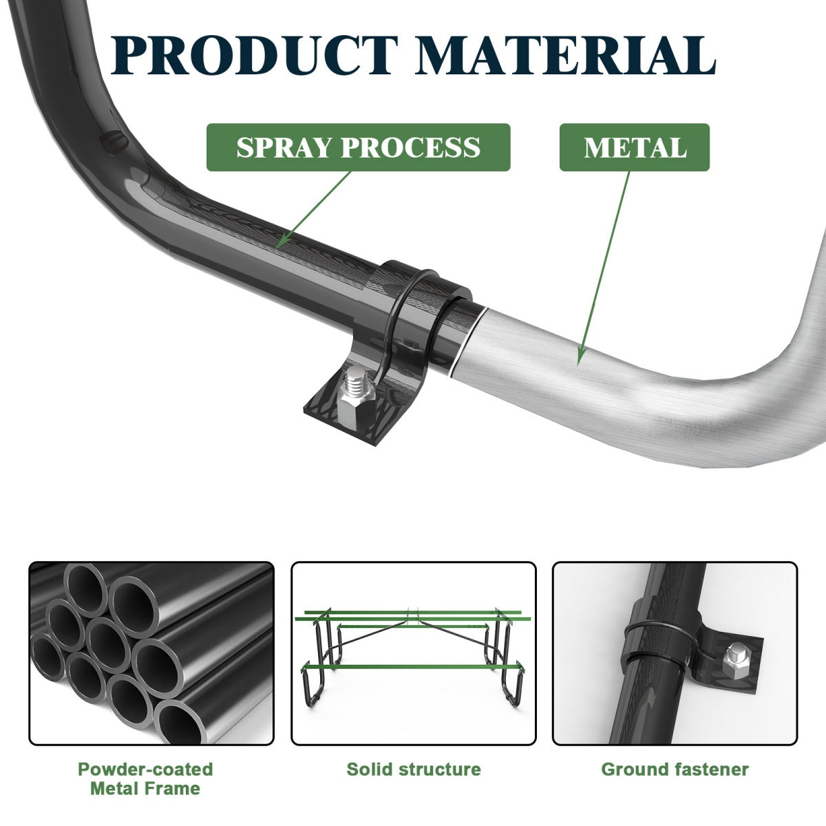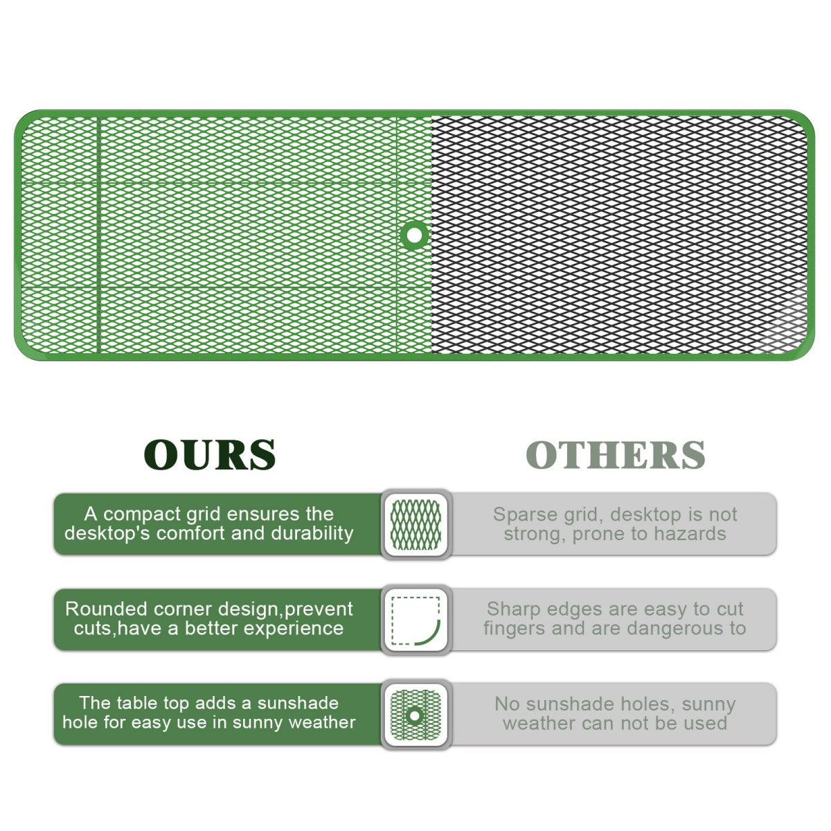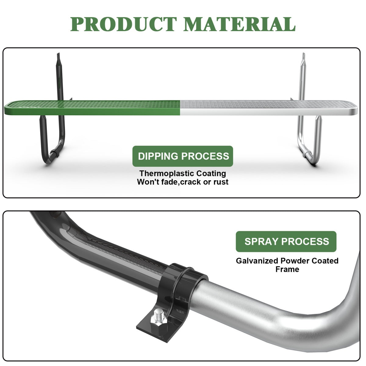 Upgrade your outdoor space with this 8ft Rectangle Picnic Table, designed for durability and style. Featuring a green tabletop with a convenient umbrella hole, it provides ample seating for gatherings. The Φ48x2.5mm zinc-sprayed, black powder-coated steel legs ensure rust resistance and stability. Ideal for parks, patios, and backyards, this weather-resistant table is perfect for dining and entertaining.