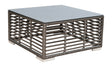 Introducing the Panama Jack Graphite Square Coffee Table with glass - a stylish and durable addition to your outdoor living area. Made from see-through grey fiber hand woven over aluminum frames, this coffee table from the Graphite collection is resistant to corrosion and scratching, making it ideal for any patio or backyard. You can easily combine it with other items from the Graphite collection to create a complete outdoor living area tailored to your needs. The table comes with tempered glass, so you won't have to worry about finding the perfect fit. Upgrade your outdoor space with this sleek and functional coffee table today.