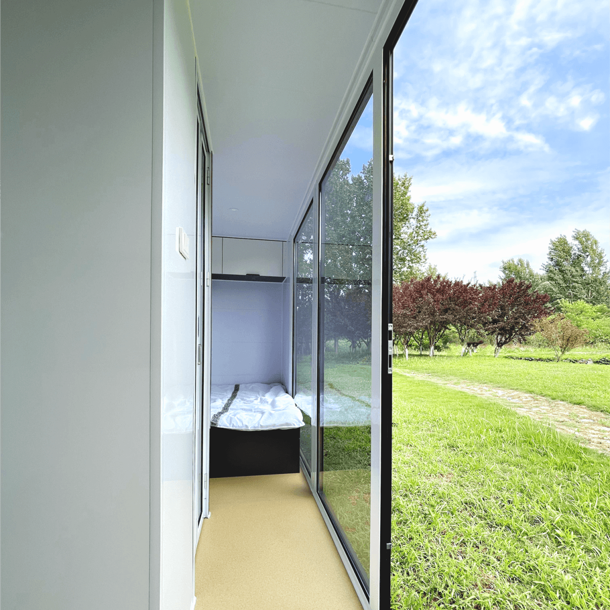 - Sleek Exterior Design: The cabin features a sleek and modern exterior with aluminum composite panels and white fluorocarbon single-coated aluminum plates.
