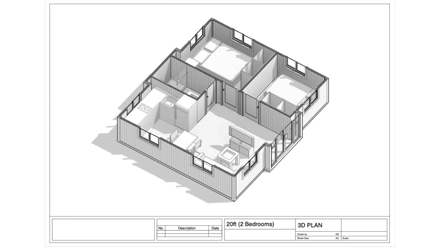 MonoHaus - 20' Expandable Container Home | 2 Bedroom, Full Bath, Kitchen, Dining + Living Room | 390 SF Tiny Home