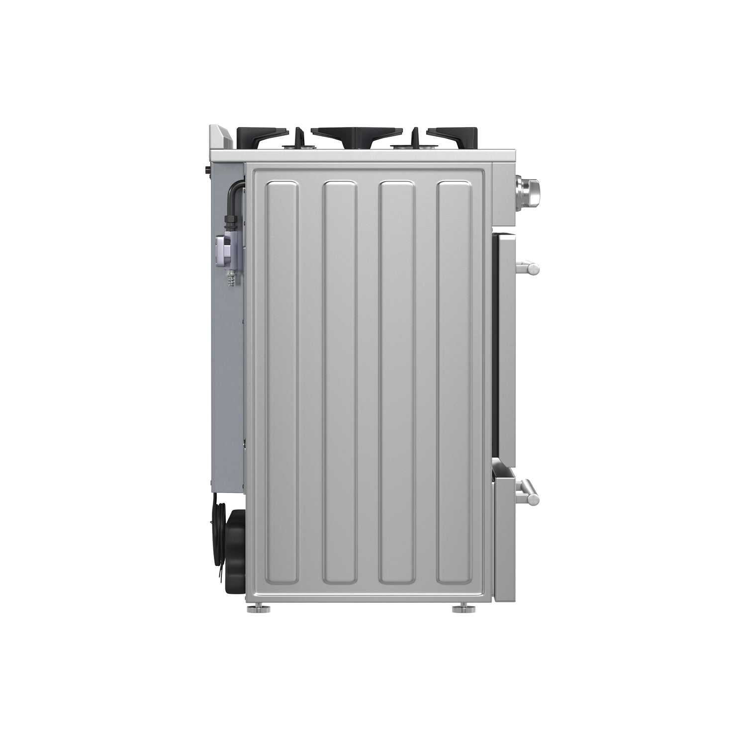 The 24” oven boasts a generous 2.3 cu. ft. capacity. Combined broil and bake output of 13,000 BTUs, complemented by an internal cooling fan for temperature control.