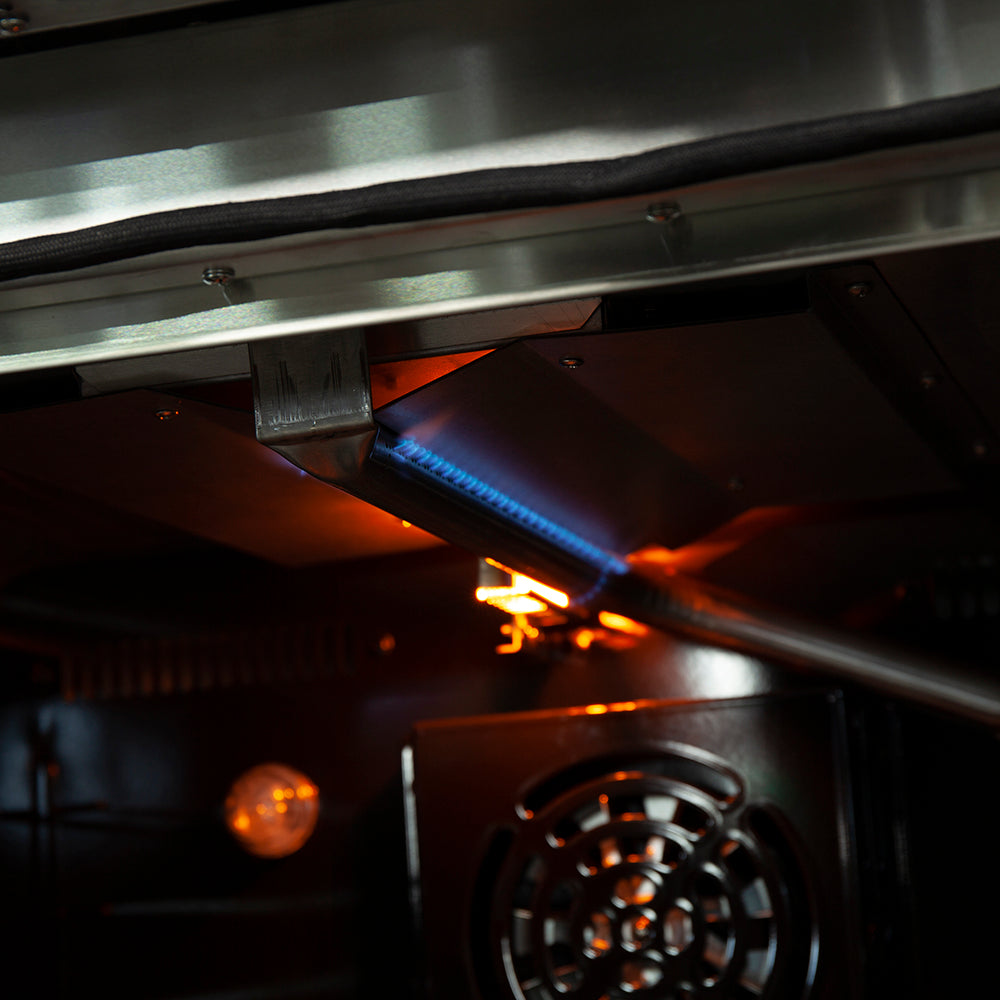 - Brightly Lit Oven Interior. Black Enamel Oven Interior with U Tube Auto-Ignition and 2 Halogen Lights offers improved visibility inside the oven. Makes cooking and checking on the food easier