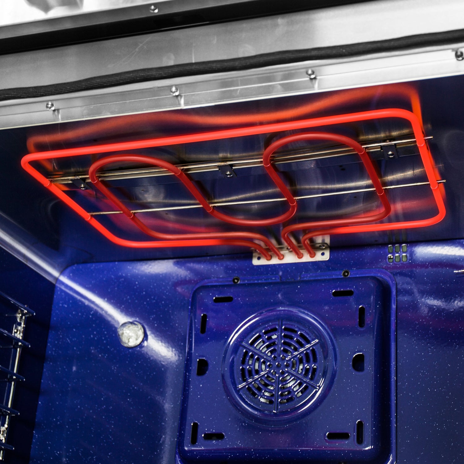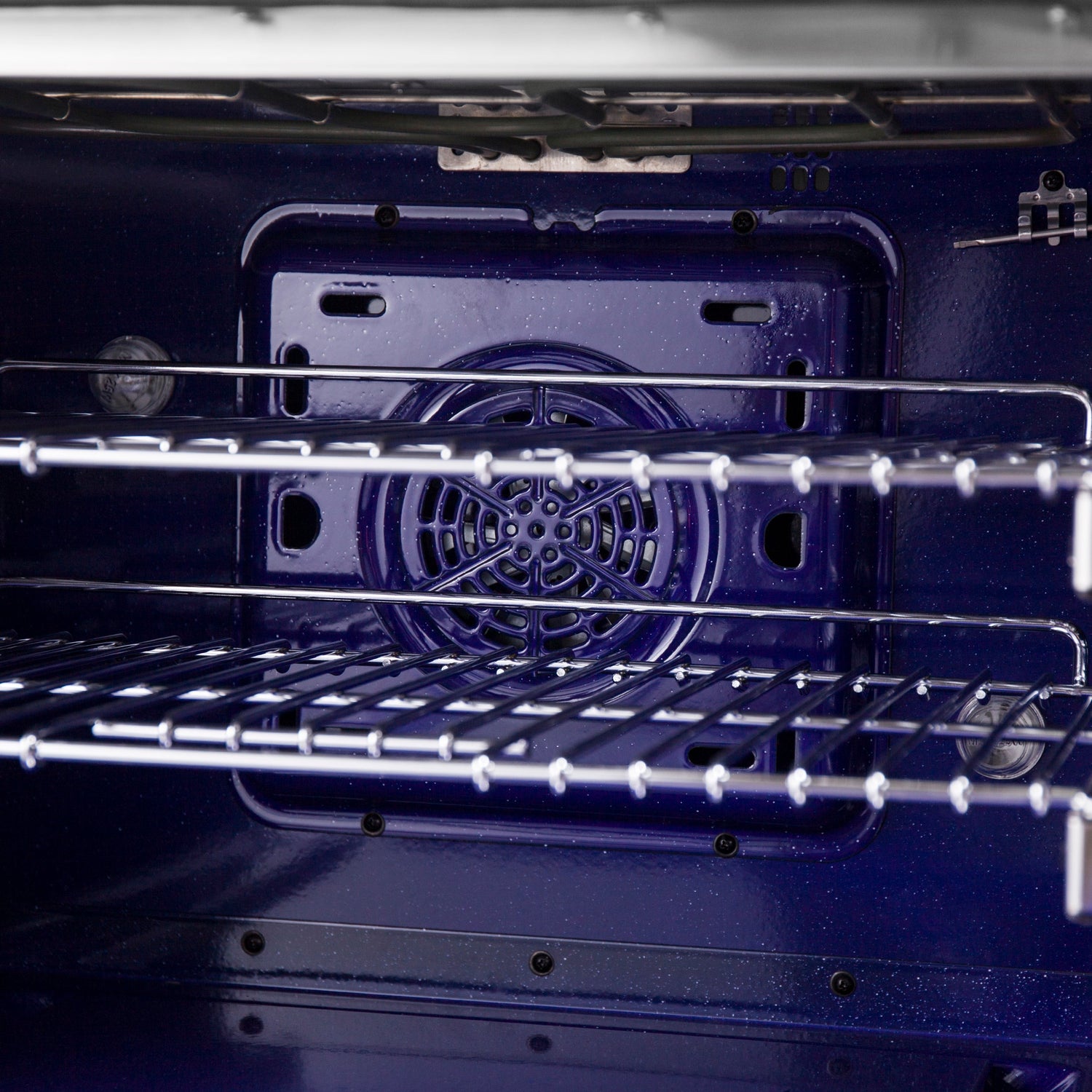 - Interior Illumination. Enjoy cooking with precision in the speckled Blue Enamel Oven Interior, brilliantly lit by 4 Halogen Lights