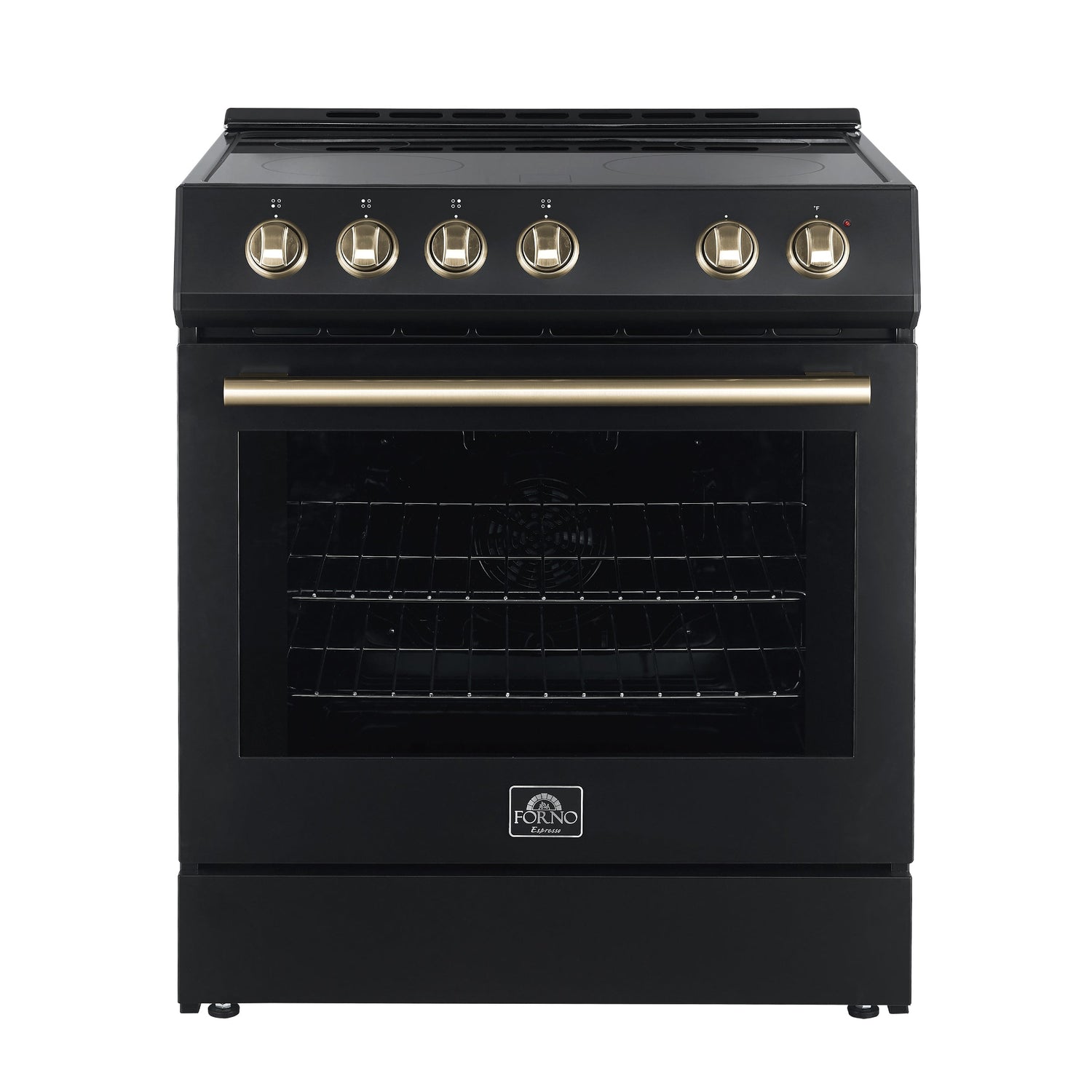FORNO Espresso Leonardo 30" 5 cu. ft. Electric Range in Black with Antique Brass Handles, FFSEL6012-30BLK