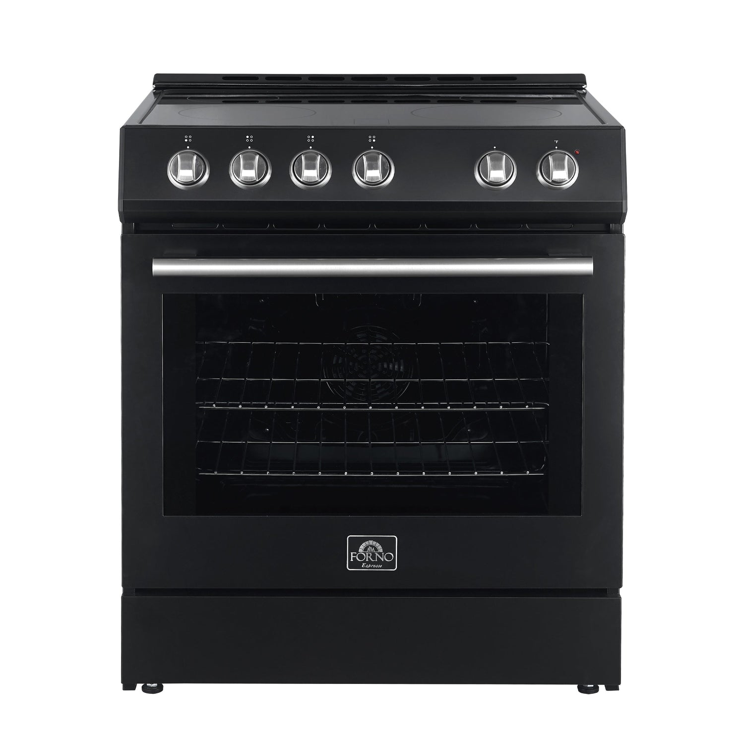 FORNO Espresso Leonardo 30" 5 cu. ft. Electric Range in Black with Silver Handles, FFSEL6012-30BLK