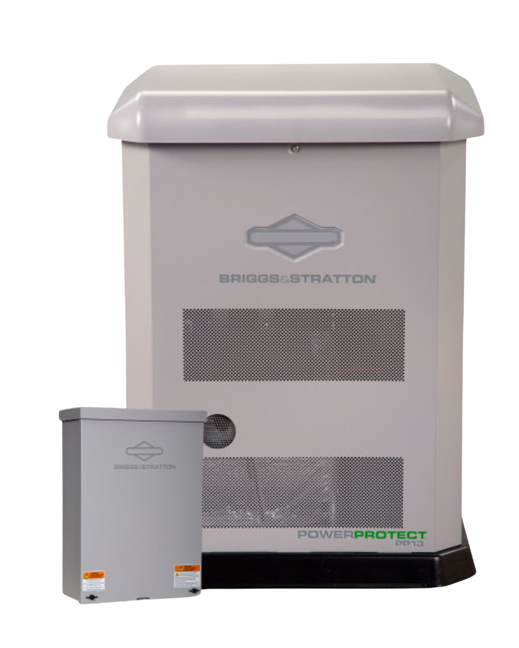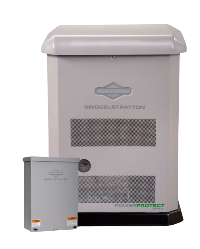 This Briggs & Stratton 040742 bundle includes the PowerProtect 13kW PP13 Standby Generator and 100 Amp 16 circuit automatic transfer switch. Offering more power in a smaller footprint that fits into tight spaces and lot lines, PowerProtect™ 13kW¹ Home Standby Generator provides the essential power you need during a power outage. Engineered with NGMax™ technology for superior power and performance, this compact but mighty generator features a 39% smaller footprint3 than other leading generators. With 37 kVA of motor starting power, the 13kW generator easily handles large appliances and equipment.
