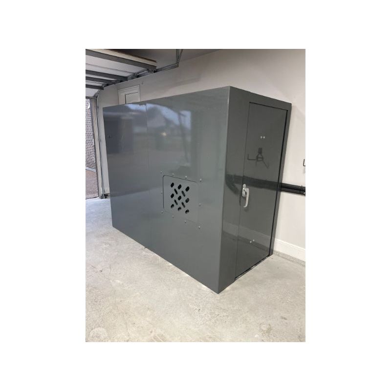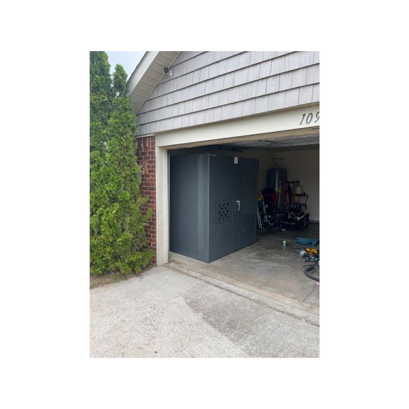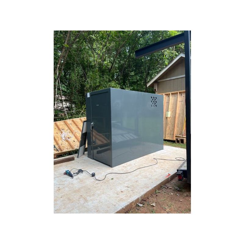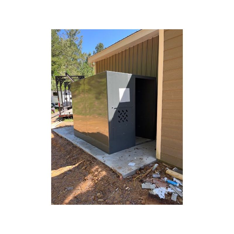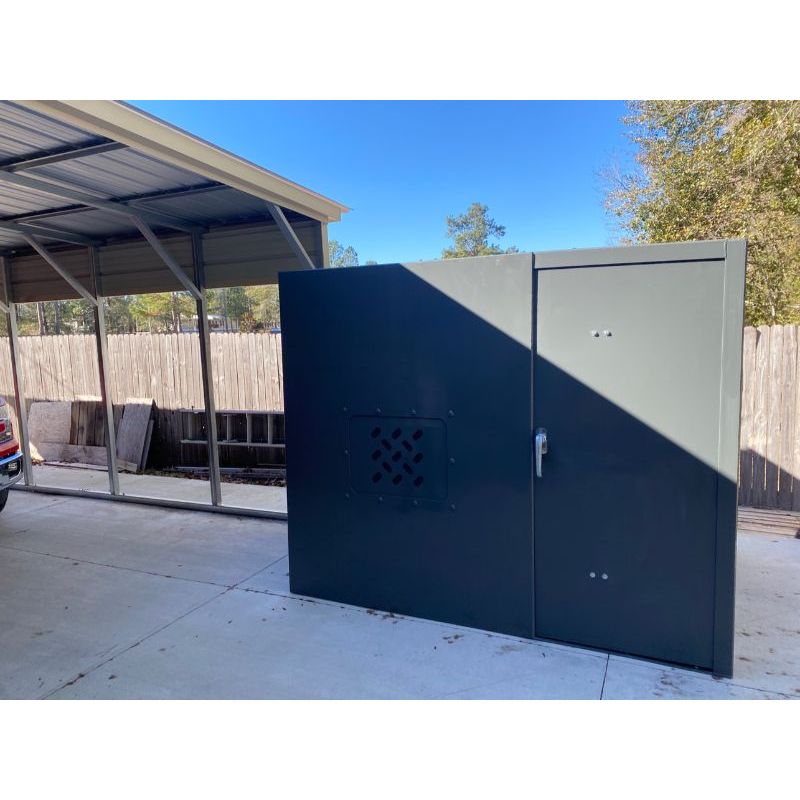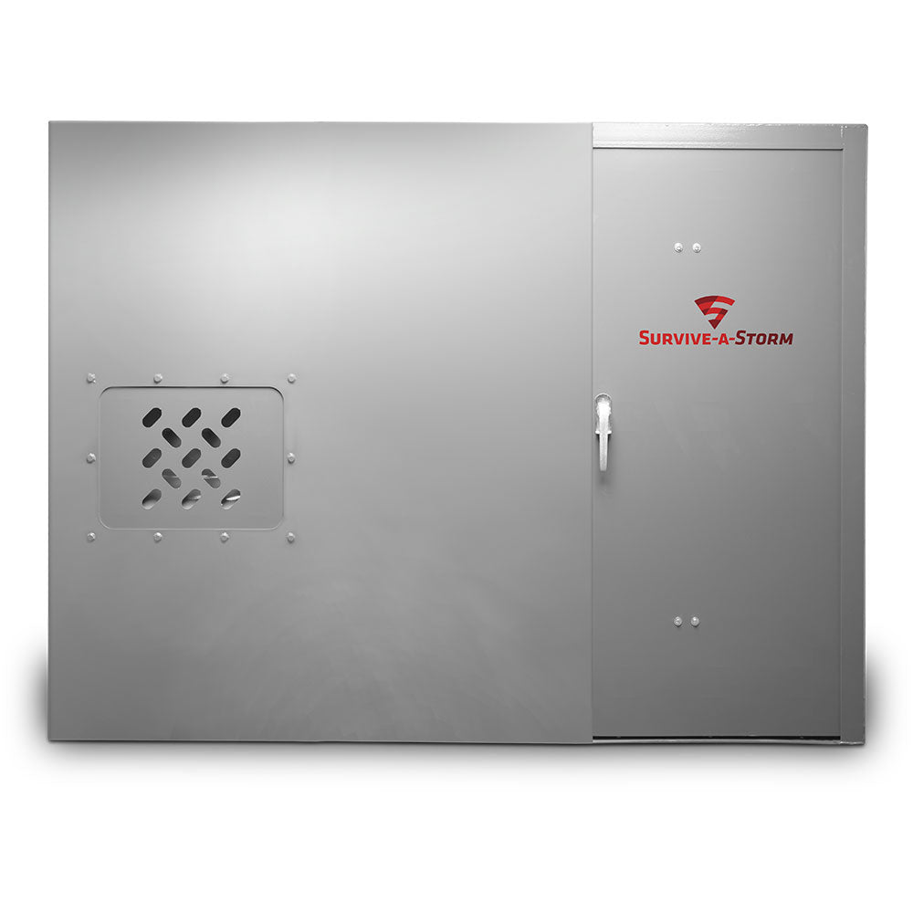 Designed for placement in the yard, under a carport, in a garage, or any concrete pad area, this storm shelter is built to endure extreme conditions. It features an in-swing door (out-swing available on 3'x5' and 4'x4' models) and an escape hatch that can be removed from the inside, making it nearly impossible to be trapped by storm debris.