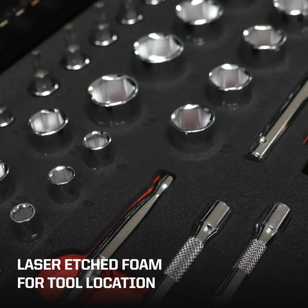 This 103-piece metric tool set provides everything you need to keep your bike dialed in, whether you’re at the track, in the garage, or hitting the trails. Say goodbye to disorganized, mismatched tools—this MotoBox keeps each tool securely stored and organized for quick access. It’s equipped with every tool a motorcycle or dirt bike enthusiast needs, designed to be compact, portable, and built to last.