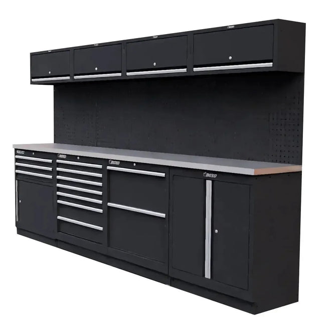 Transform your workspace with the BoxoUSA OSM Series 104” 20-Piece Organized Storage Modules Build Out. This modular storage system is crafted to bring maximum efficiency and a polished look to any garage or shop, offering a perfect blend of robust construction and modular tool storage.