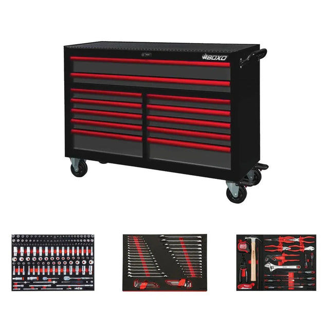 Pro Series | 53" 12-Drawer Rolling Tool Box with Master Tool Set - Black / Red is backordered and will ship as soon as it is back in stock.