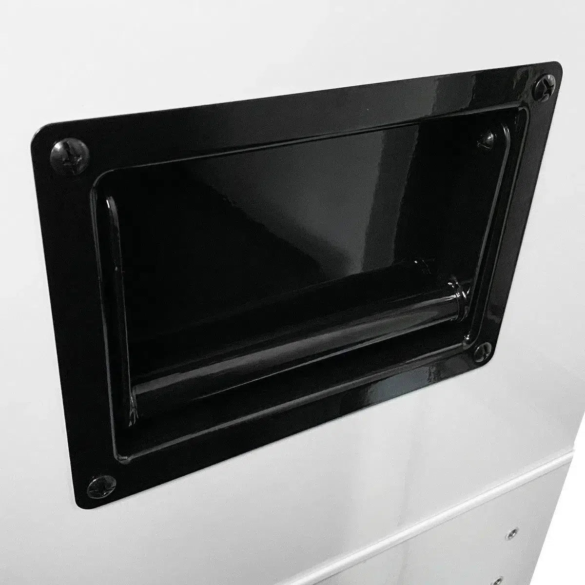 - Ergonomic pull handle mounts to either side of the roll cabinet