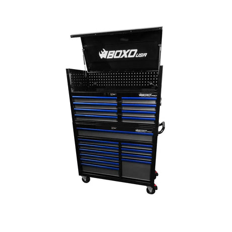 Pro Series | Loaded 53" 20-Drawer Rolling Tool Box | Black and Blue