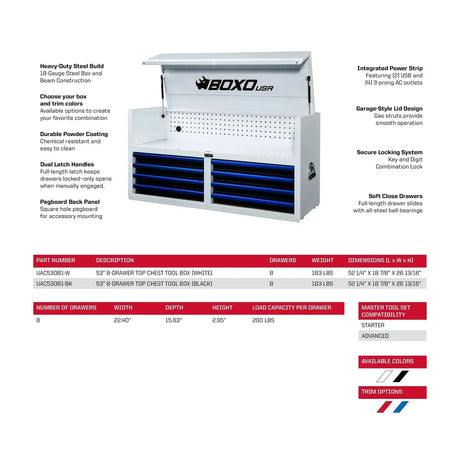 Pro Series | Loaded 53" 20-Drawer Rolling Tool Box | White and Blue