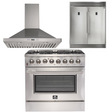 FORNO Appliance Package - 36 Inch Dual Fuel Range, Wall Mount Range Hood, Refrigerator, AP-FFSGS6156-36-W-4