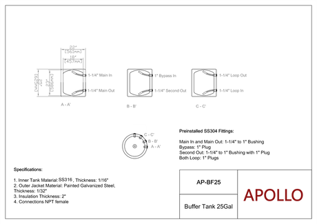 APOLLO Central Heat Pump - 72k btu / 6 ton - Air to Water - EVI Inverter DC technology