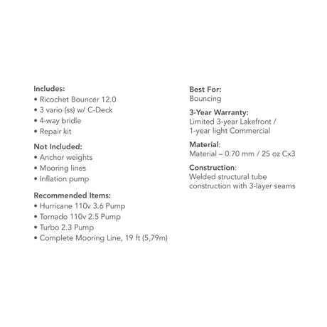 Aquaglide - Ricochet Bouncer 12.0 w/ C-Deck - Water Bouncers - Reinforced - 585221123