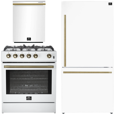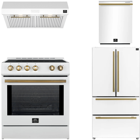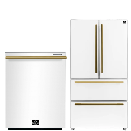 FORNO Espresso Package - 36" Refrigerator and Dishwasher in White with Antique Brass Handles