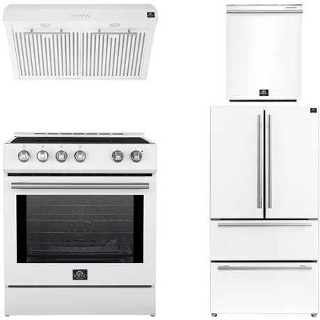 FORNO Espresso Package - 36" Refrigerator and Dishwasher in White with Silver Handles