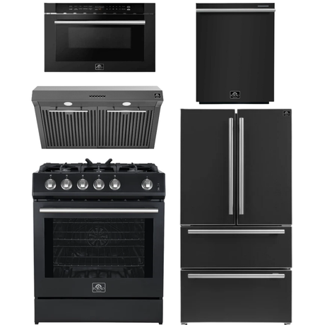 FORNO Espresso Package - 36" Refrigerator and Dishwasher in Black with Silver Handles