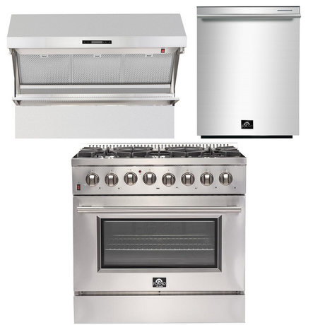 FORNO Appliance Package - 30" Gas Range, 30" Range Hood, Dishwasher, AP-FFSGS6276-30-W-2